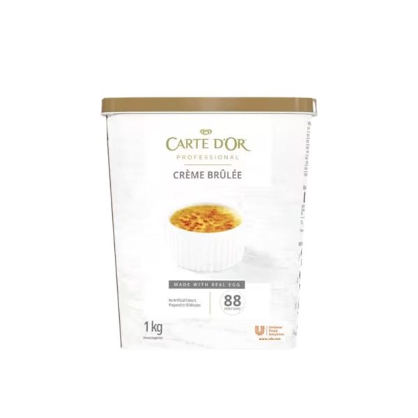 Carte D’Or Crème Brûlée offers a smooth, rich vanilla base that delivers consistent quality with minimal effort. This non-bake solution saves valuable kitchen time—simply refrigerate the mix to set, then finish with a quick torching of sugar for the perfect caramelized top. Ideal for chefs who want to add a personal twist, the base can be customized with flavors, garnishes, or presentation styles to create a unique signature dessert. With Carte D’Or, you get reliability, efficiency, and great taste in every portion. Finished desserts can be prepared in advance and stored for up to two days in the refrigerator, helping you manage prep time and reduce waste. Whether for à la carte service or banquet settings, Carte D’Or Crème Brûlée brings convenience and elegance to your dessert menu—without compromising on flavor or texture.